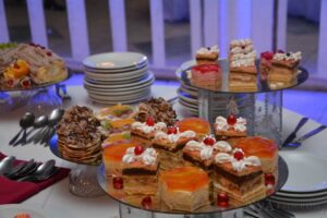 Nuestro Staff: un cheff, asistentes de cocina, parrillero, maestro pastelero, maître, camareros, camareras, barman, recepcionistas y supervisores de evento.